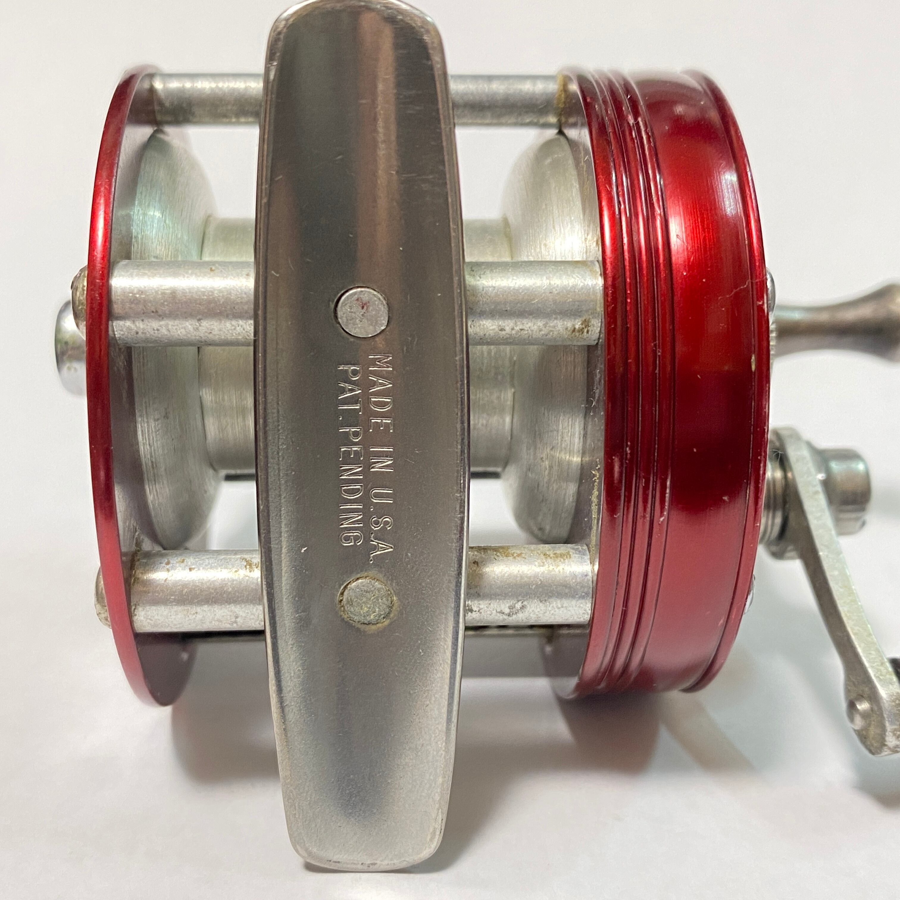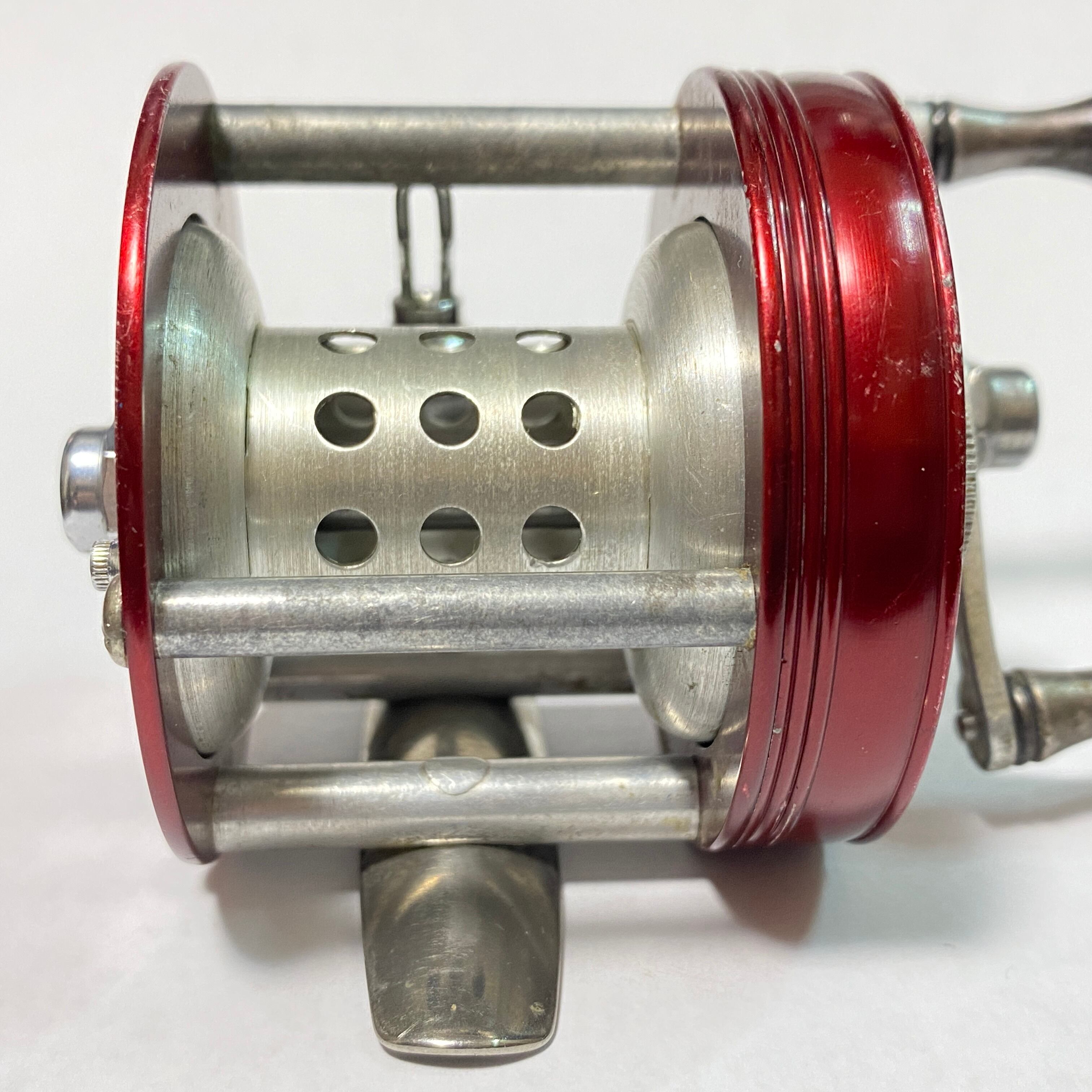 ラングレーの軽量ナロースプールモデル。近年、人気が急騰しているルアーキャストです。軽量でナロースプールという仕様が人気の理由です。エッジの傷、汚れ、金属のくすみがございますが、全体的にとてもキレイな状態です。ハンドルつまみは金属製で固着なしになります。曲がりが確認できます。非常に滑らかで心地よいフィーリングです。