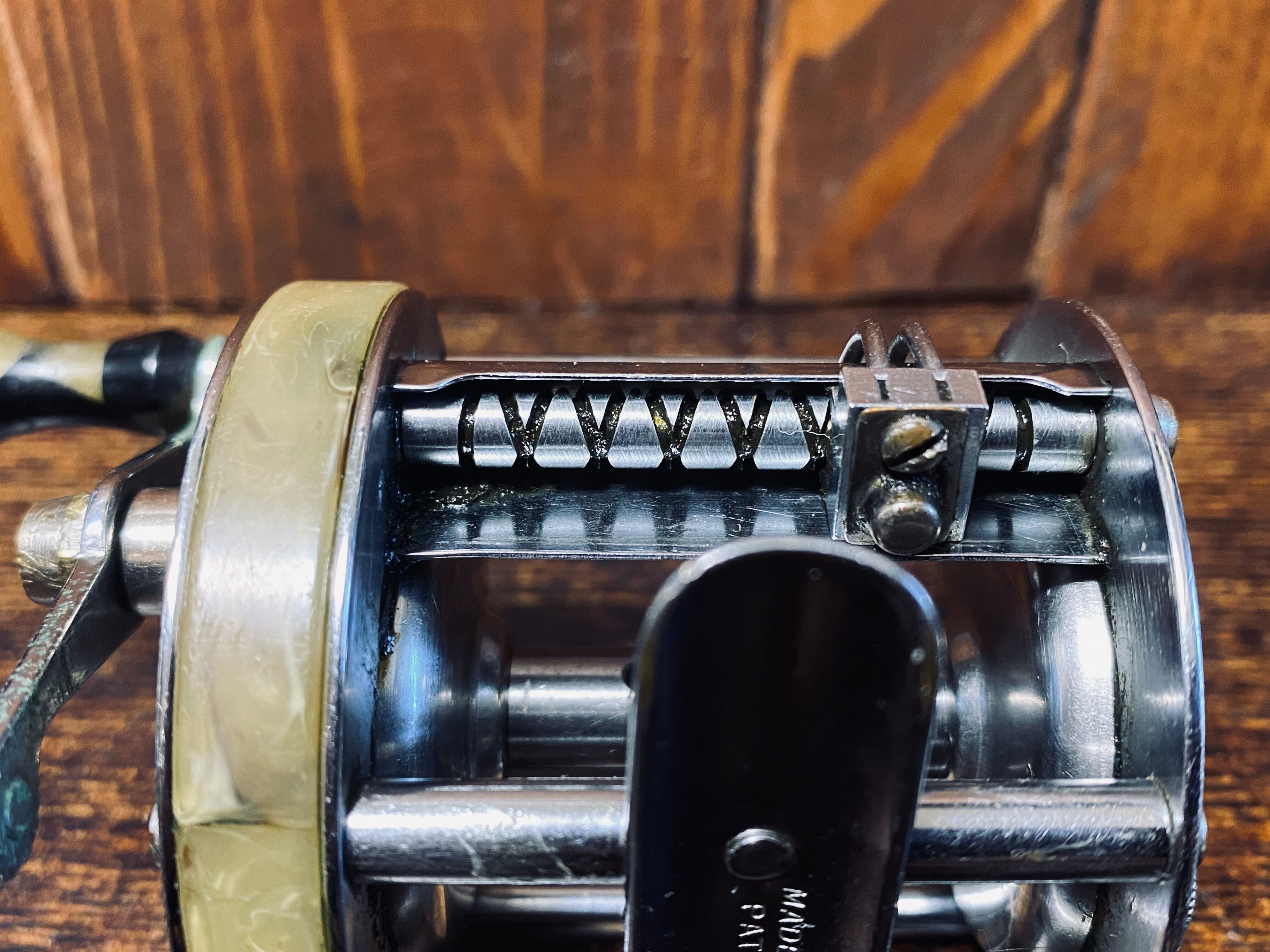 使用と経年による傷、スレや汚れがございます。比較的コンディションの良いリールです。レベルワインダー、ハンドルつまみ、スプール回転、クリッカーはチェック済みです。